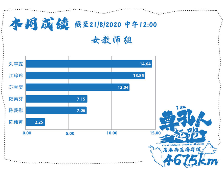 比赛来到第18天, 尊孔师生们已累计完成14468公里, 并环绕了马来西亚海岸线3圈。 其中高二智与高一诚两班的累积里数更是突破1000km, 两班分别完成1430km与1235公里。 还未开始的师生们,要抓紧时间哦~ 同时提醒同学们跑前热身跑后拉筋, 在公园等公共场合运动时, 要时刻保持社交距离,注意安全。 #cpss4675