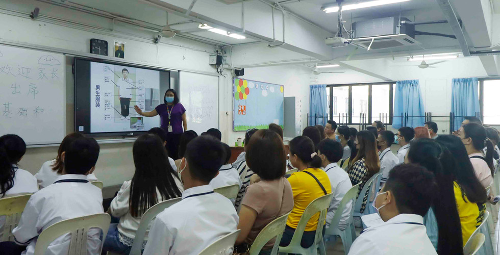 这次说明会中最主要传达的是关于教务、训导与联课的须知事项。关于教务方面,班主任讲解了学籍处理、课程规划、成绩评分与升留级等项目,其中成绩评分占了重要的一环,因我校的评分项目除了考试成绩,还包括作业、操行等。接着,便是由训导处管理的请假、仪容和校规事宜,班主任也特别向家长强调了发型的标准,譬如女同学应如何把头发束好,男生应避免什么发型。此外,这次也讲解了联课活动的规则与制度,以帮助家长更了解自己孩子所选的学会。最后,班主任也呼吁家长们注册Telegram并订阅我校的手机讯息收发系统,如此便可及时收到孩子的拍卡通知和校内通告。